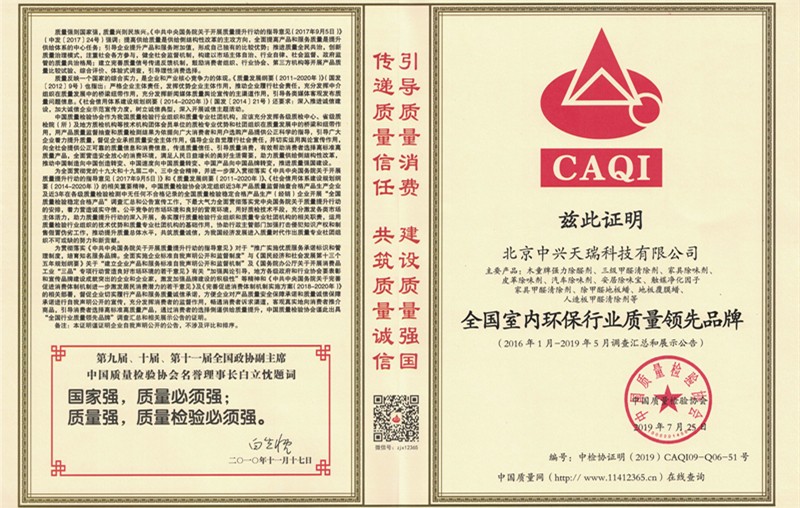 木童除甲醛產品榮獲2018年全國質量信得過產品稱號